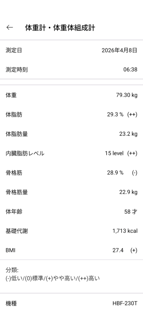 6.ダイエット朝 79.3kg 昼の変化量 700g以下