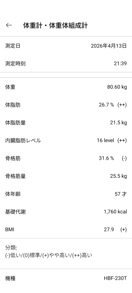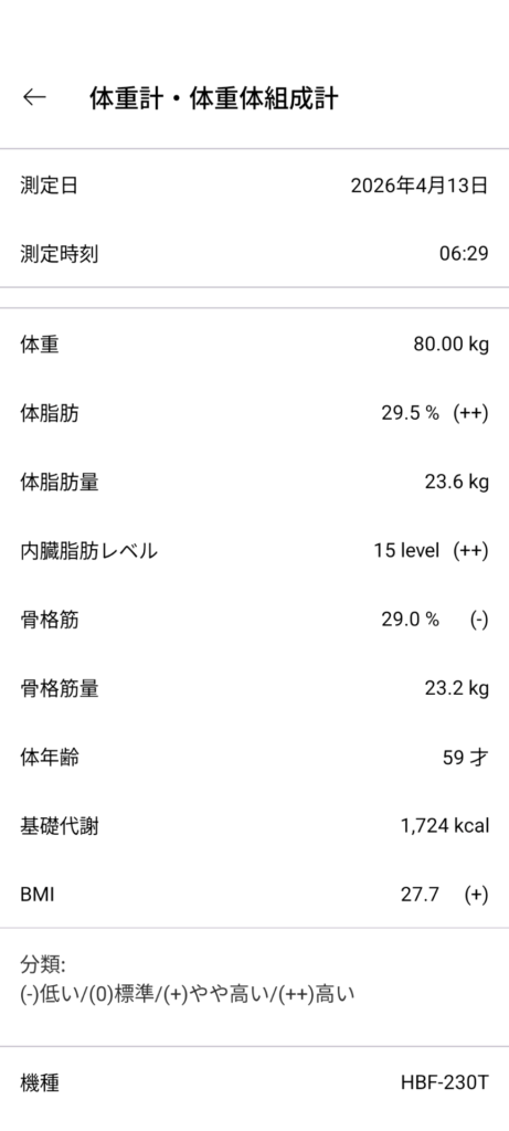 6.ダイエット朝 80.0kg 昼の変化量 600g以下