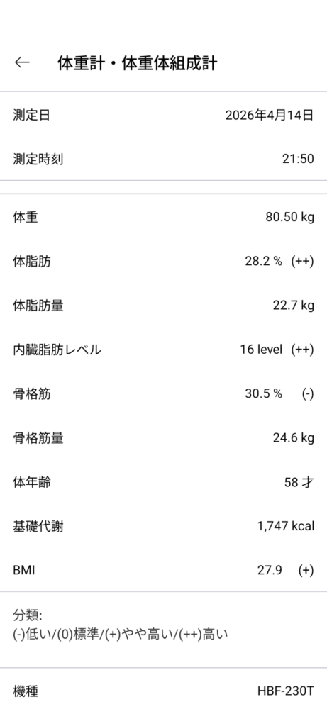 夜 80.5kg 結果 +400g 合格