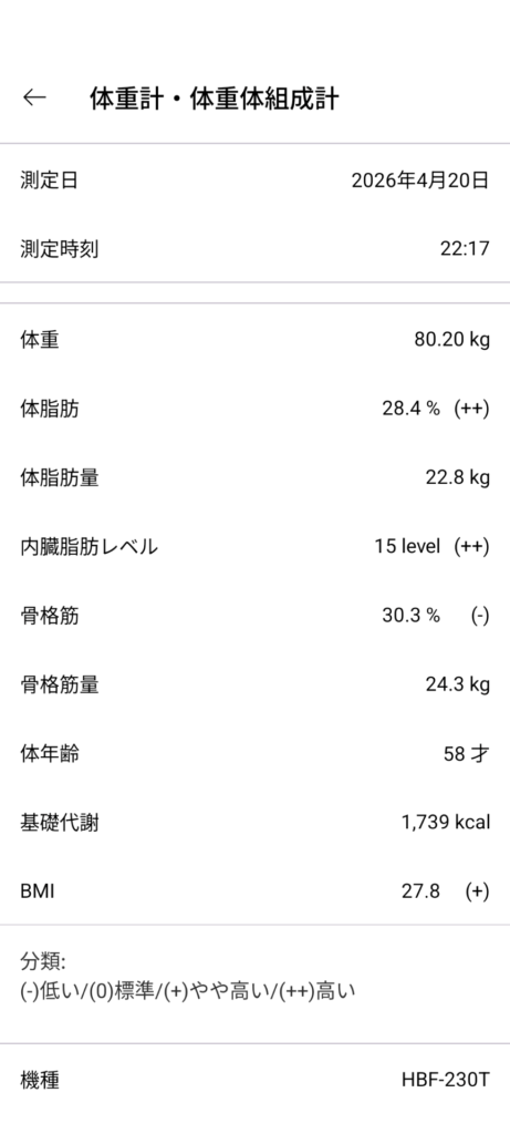 夜 80.4kg 結果 +1000g 不合格